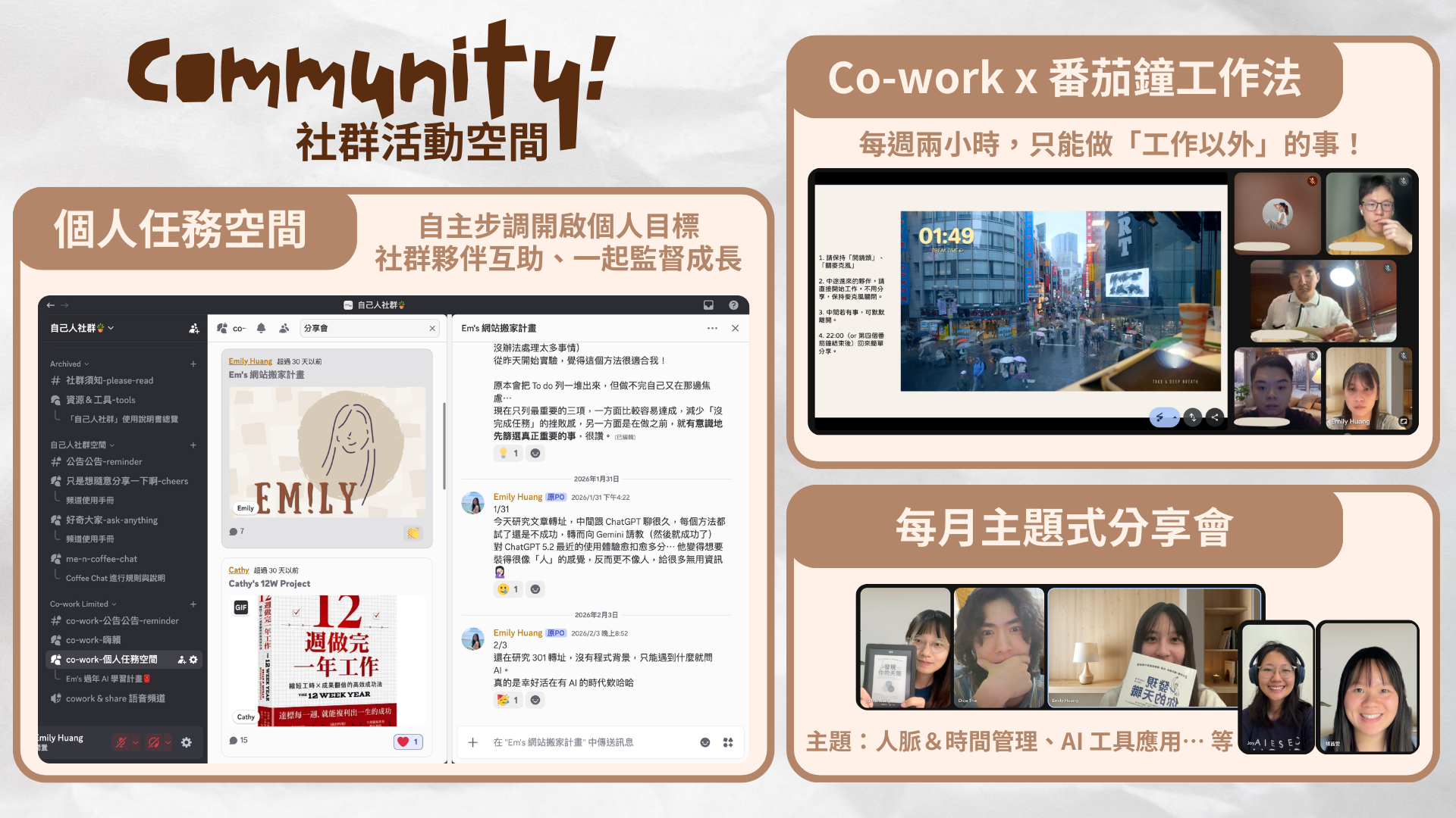 又或者是想要在下班後,空出一點時間發展副業、培養興趣,那這個社群可能很適合你!